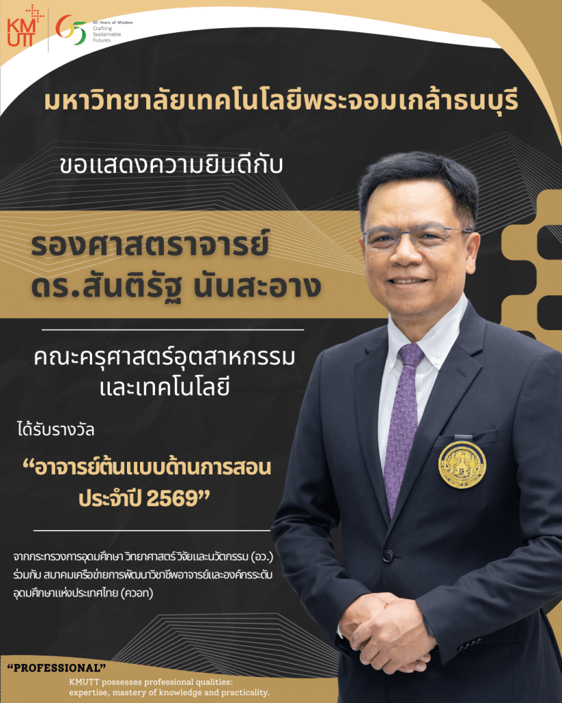 ขอแสดงความยินดีกับ รศ. ดร.สันติรัฐ นันสะอาง ได้รับรางวัล “อาจารย์ต้นแบบด้านการสอน ประจำปี 2569”