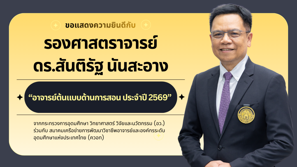 ข่าวประชาสัมพันธ์ขอแสดงความยินดีกับ รศ. ดร.สันติรัฐ นันสะอาง ได้รับรางวัล “อาจารย์ต้นแบบด้านการสอน ประจำปี 2569” Admin / 24 February 2026